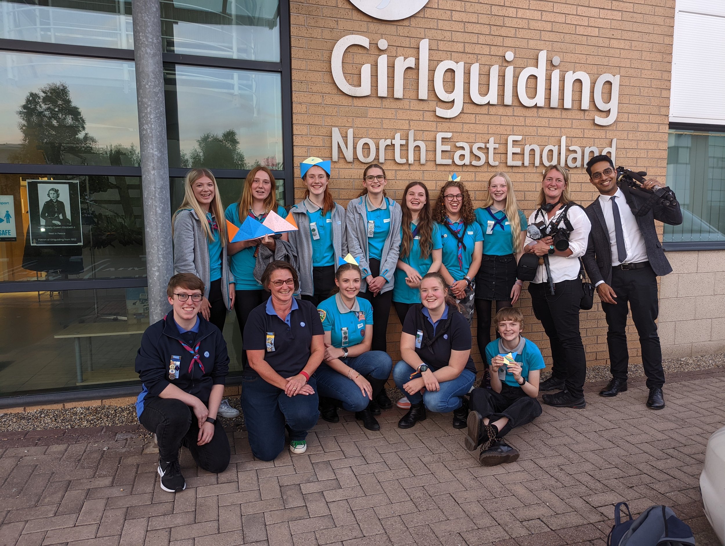 In September 2022, I was packing to move to university when my ranger unit and I were invited to the Girlguiding North East England office to take part in a session filmed by the BBC, where they wanted to know what we did and how we thought about the Queen. On the day of filming, we met up with another ranger unit and did activities such as making origami crowns, rolling and tying neckers, and looking at old badges and uniforms.